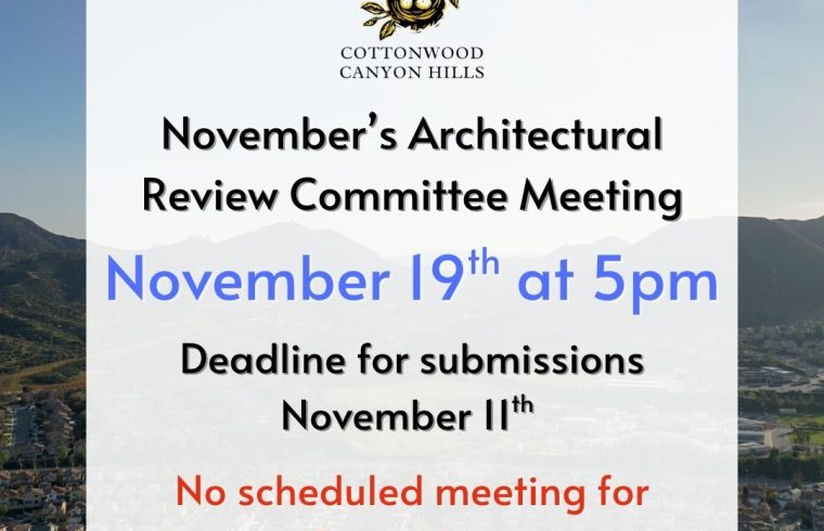 November’s meeting date will be November 19th at 5:00 p.m. Please note, there will be no meeting in December, which means any architectural applications and notices of completion submitted after November 11th won’t be reviewed until January.