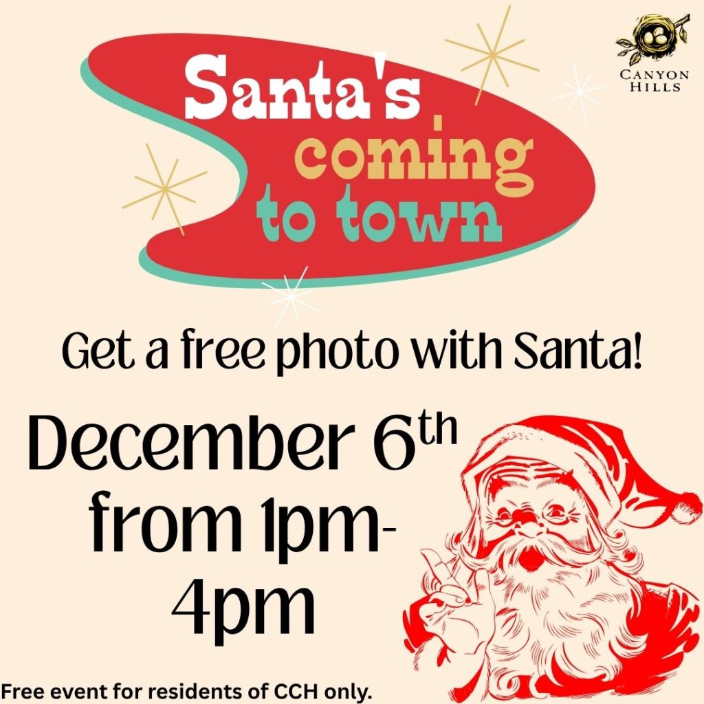 Join us on Saturday, December 6th, from 1 pm – 4 pm to get your photos with Santa.
